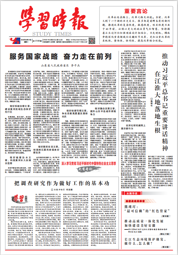 省长李干杰在10月19日出书的《学习时报》宣布文章《效劳国家战略 奋力走在前列》。
